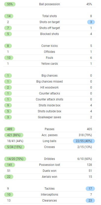 Arsenal vs Villarreal 0-0 Full Time Post Match Stats for comparison