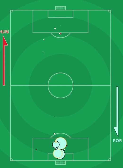 xG Hungary 0.23-3.08 Portugal shots map (Actual score Hungary 0-3 Portugal)