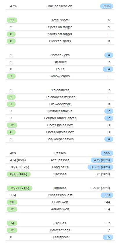 Denmark 1-2 Belgium Full time post match stats for comparison