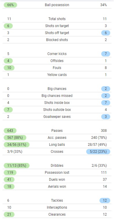 Full time post match stats Croatia 3-1 Scotland for comparison