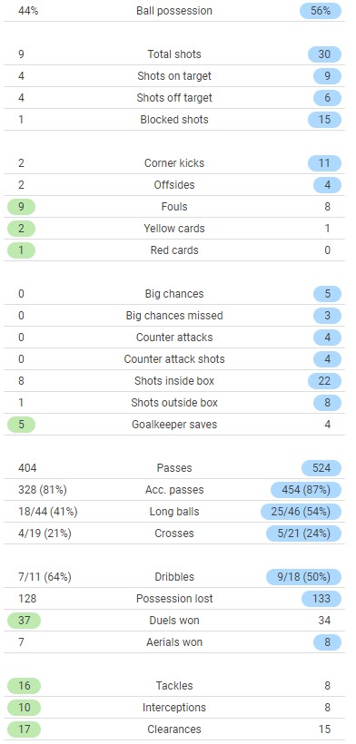 Full time post match stats LUFC 0-3 LFC for comparison