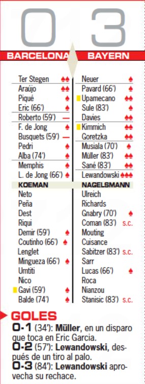 Diario Sport player ratings Barcelona Bayern Munchen September 14, 2021