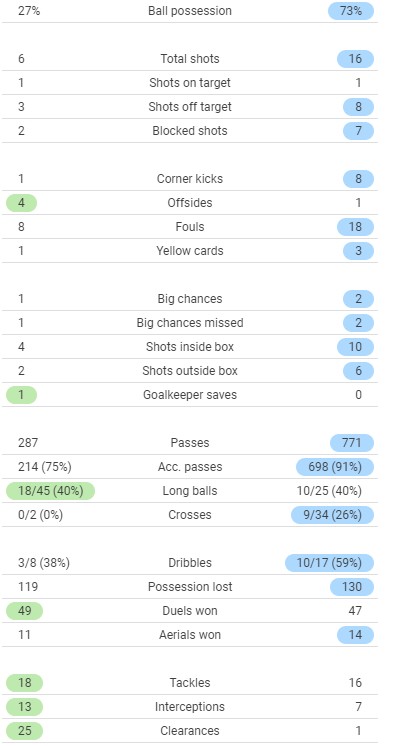 Full time post match stats Juventus vs Chelsea 1-0 for comparison