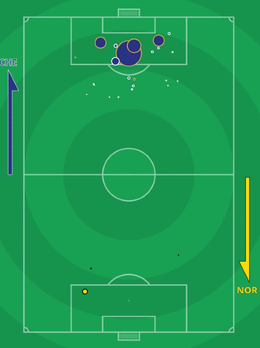 xG Chelsea 2.99-0.21 Norwich City shots map (Actual score CFC 7-0 NCFC)