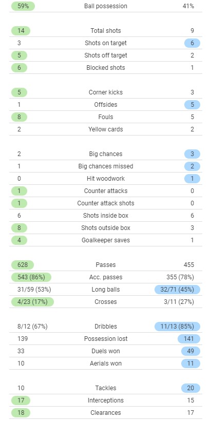 Full time post match stats Liverpool vs Brighton 2-2 for comparison