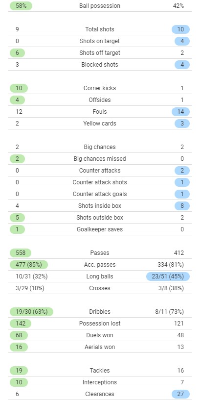 Full time post match stats Spurs vs Man United 0-3 for comparison