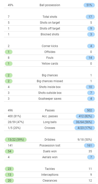 Man U vs Young Boys 1-1 Match Stats for comparison
