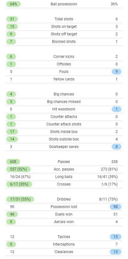 Manchester City vs Leeds 7-0 Match Stats for comparison