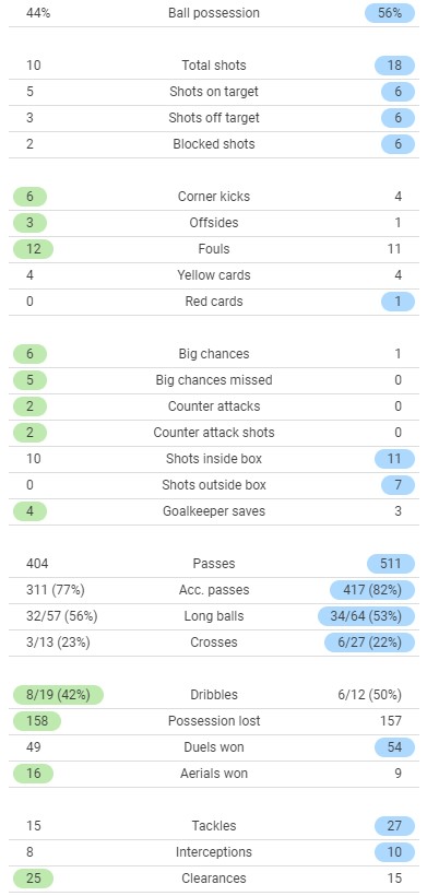 Tottenham vs Liverpool 2-2 FT Post Match Stats for comparison