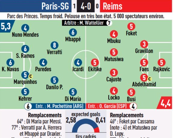 L’Equipe player ratings PSG 4-0 Reims 2022