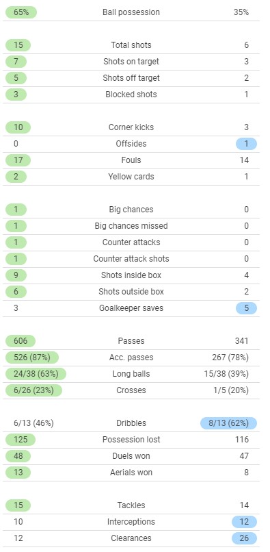 Chelsea vs Spurs 2-0 Match Stats for comparison