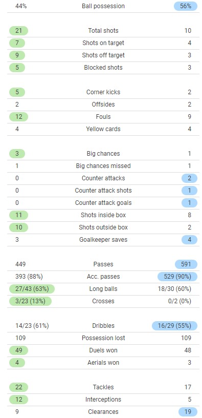 Real Madrid vs PSG 3-1 Match Stats for comparison