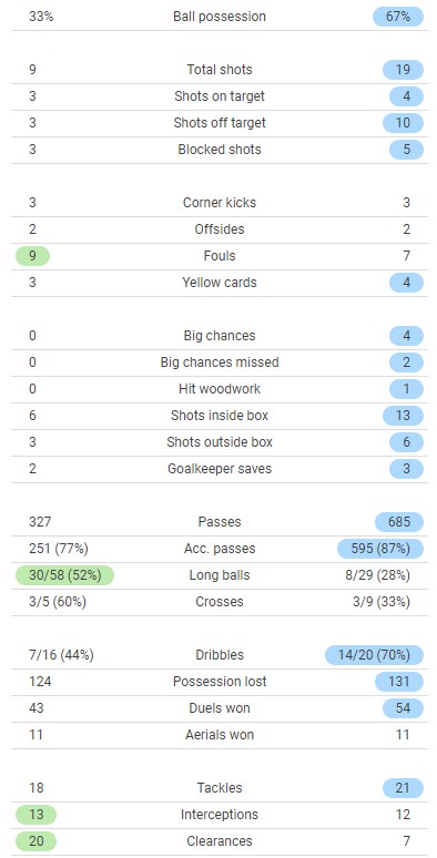 (GS match stats on left; FCB stats on right)