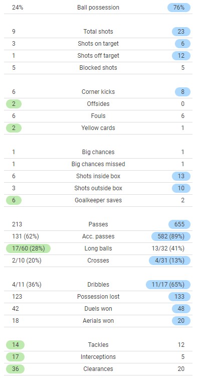 Saints vs Arsenal 0-1 Match Stats for comparison