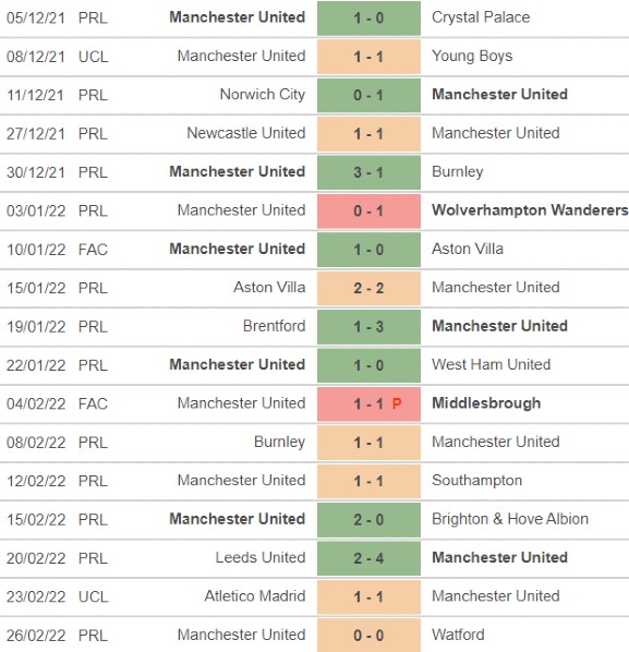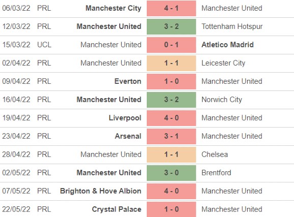 Here is a list of games managed by Ralf Rangnick as United manager in the current 2021/22 season (Premier League, Champions League and Cup) after replacing Ole Gunnar Solskjaer in December 2021.