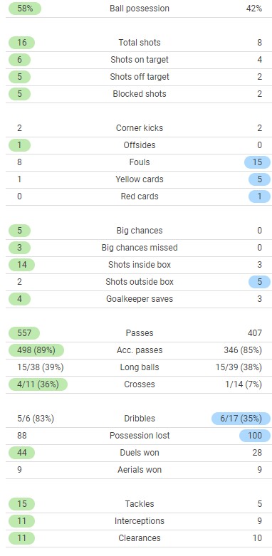 Spurs vs Arsenal 3-0 Match Stats for comparison