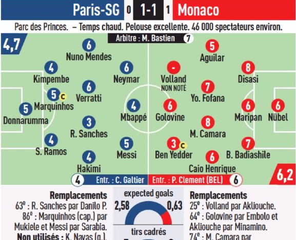 L’Equipe player ratings Paris Saint Germain vs Monaco 2022