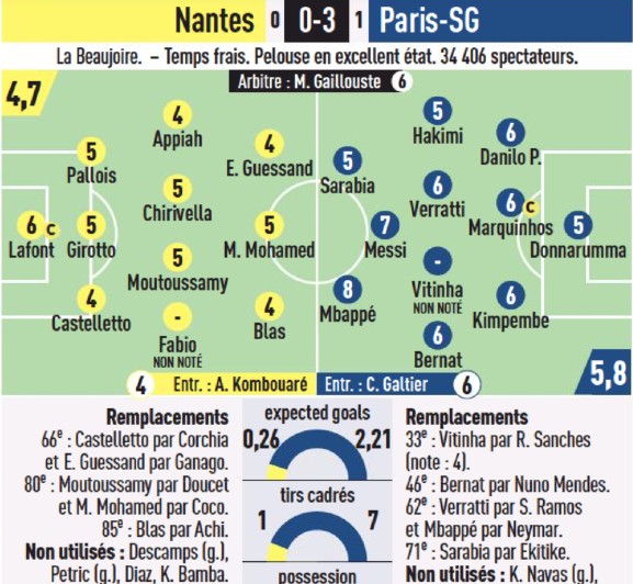 L’Equipe ratings FCN 0-3 PSG 2022/23 season (Mbappe two goals, Nuno Mendes one goal)