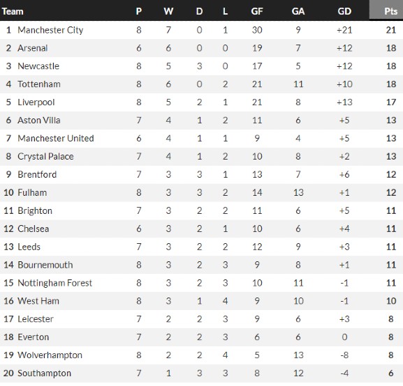 Here is a look at the Premier League standings at Christmas last season (22/23) and the season before it (21/22). Man City were top of the table at Christmas 2021, but Arsenal lead the PL standings at Christmas 2022.