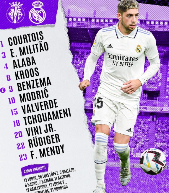Courtois, Mendy, Alaba, Rudiger, Militao, Kroos, Tchouameni, Modric, Vini, Benzema, Valverde.