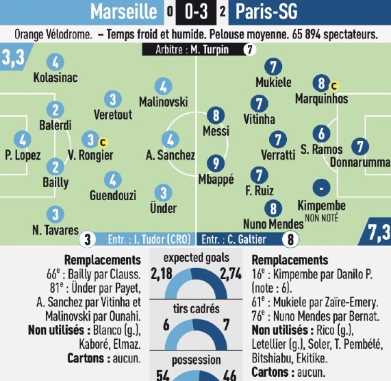 Here is a look at how the big French newspapers (L’Equipe, La Provence) gave their player ratings for Marseille vs Paris SG on February 26, 2023 (Crowd Attendance of 65,894)