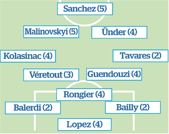2/10 player rating for Eric Bailly and Balerdi vs PSG.