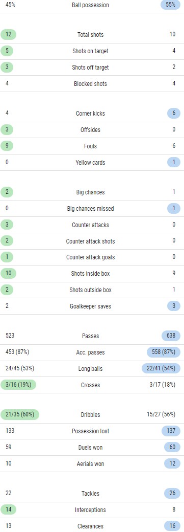 Bayern Munchen vs PSG 2-0 Match Stats for comparison