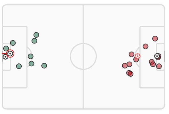 6th minute Goncalves chance vs Arsenal xG 0.33 (wide)
