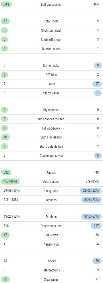 Real Madrid vs Liverpool 1-0 Match Stats for comparison