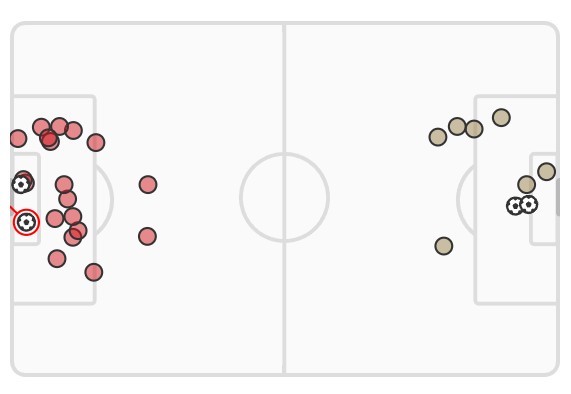 xG Liverpool 3.66-0.72 Arsenal shots map (Actual score LIV 2-2 ARS)