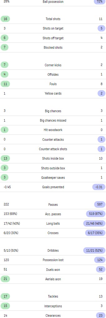 West Ham had only 28% of possession, but had more shots (16 to Arsenal’s 11)