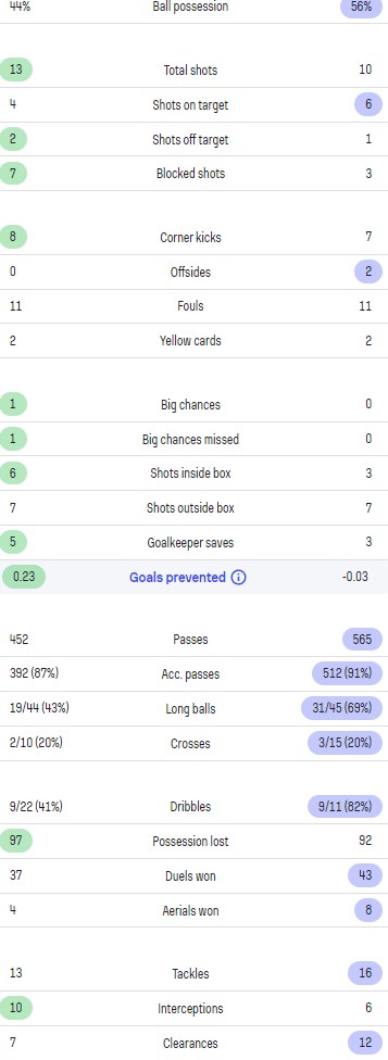 Real Madrid vs Man City 1-1 Match Stats for comparison