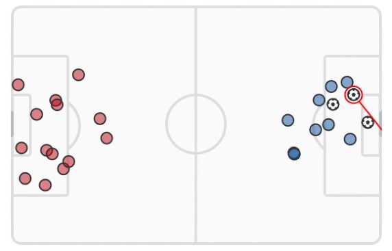 xG Arsenal 0.79-1.30 Brighton shots map (Actual score AFC 0-3 BHAFC)