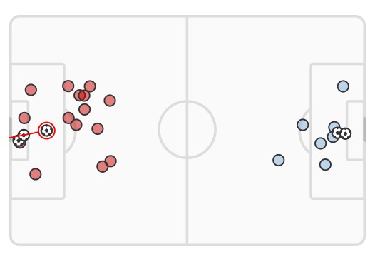 xG Manchester United 2.88-1.15 Nottingham Forest shots map (Actual score MUN 3-2 NFO)