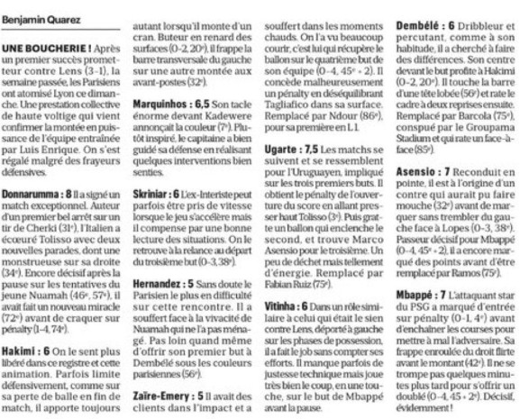 While L’Equipe gave four players a 8/10, Le Parisien only reserved that rating for goalkeeper Donnarumma.