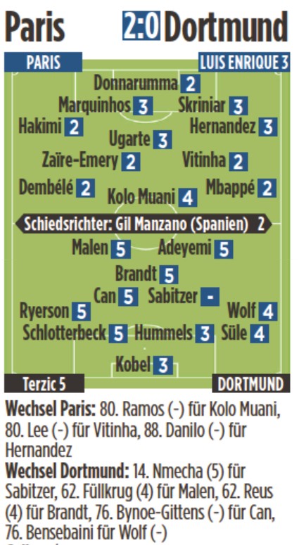 Bild player ratings PSG BVB Champions League