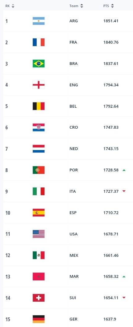 Jumps up the table for both Portugal and Morocco with Italy and Switzerland moving down.