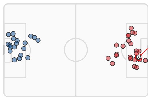 xG Chelsea 1.96-1.45 Liverpool shots map (Actual score CHE 0-1 LIV)