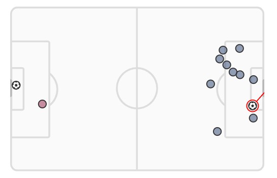 The first half shots map (just two shots for Barca, including Raphinha’s goal)