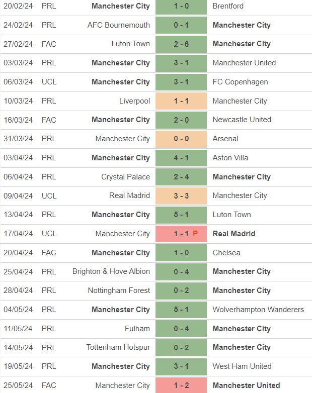 Here is a look at the list of defeats suffered by Manchester City during the previous 23/24 season. Includes MCFC losses across all competitions (Community Shield, Premier League, Champions League and domestic Cups)
