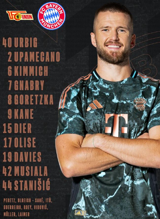 Union Berlin vs Bayern Munich FC starting lineups and subs 2025