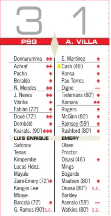 Diario AS player ratings PSG 3 Aston Villa 1 Champs League