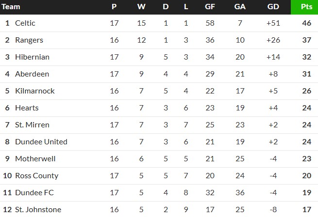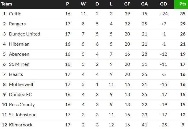 Celtic had a 15 point lead over Rangers in the Scottish Premiership table at the time of the split in April 2025.