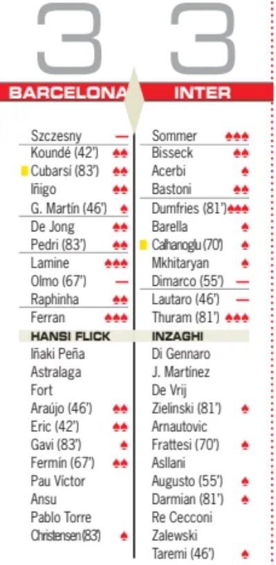 Joan Garcia (goalkeeper); Kounde, Cubarsi (Fermin Lopez 74′), Gerard Martin, Balde (Christensen 88′); Eric Garcia, Pedri (Roony Bardghji 88′); Raphinha (Casado 88′), Yamal, Rashford (Frenkie de Jong 74′); Ferran Torres