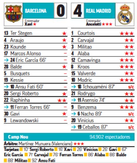Ter Stegen, Kounde, Cubarsi (Ferran Torres 79′), Inigo Martinez, Balde (Ansu Fati 88′), Eric Garcia, Casado, Pedri (Pablo Torre 83′), Raphinha, Yamal (Gerard Martin 79′), Lewandowski (Sergi Dominguez 80′)