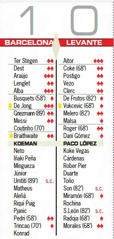 Sport thought there wasn’t much to choose between Barcelona and Levante on the day. They also thought opposition keeper Aitor Fernandez had a fine game under the sticks for Levante.