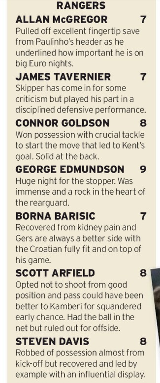 Scottish Daily Record Rangers player ratings vs Braga Second Leg