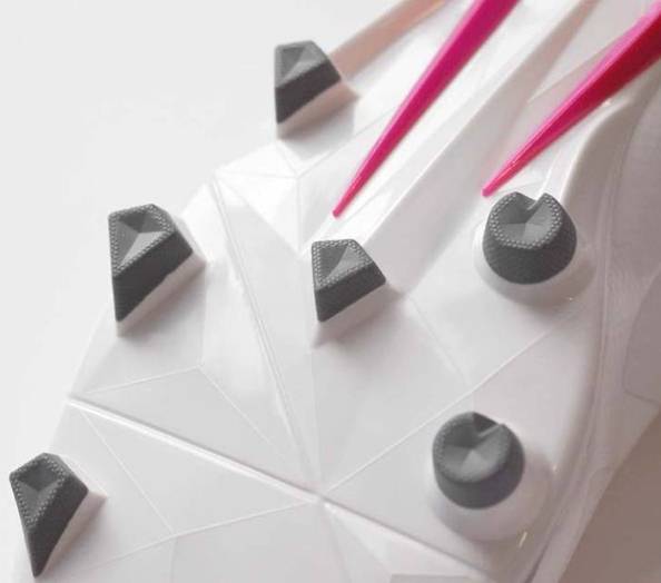 The new Velocita Pro 2015 boots are Umbro’s lightest ever at 165 grams. To make the speed boots more flexible, Umbro have made modifications in the stud configuration. This involved cutting away a section of the circle studs to reduce weight and using diamond shaped studs for a stronger structure.The laces have been flattened to minimise excess nylon.
