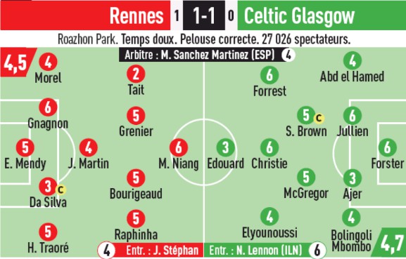 Player Ratings Stade Rennais 3-1 Glasgow Celtic