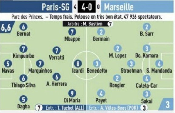 L’Equipe player ratings Paris SG vs Marseille 4-0